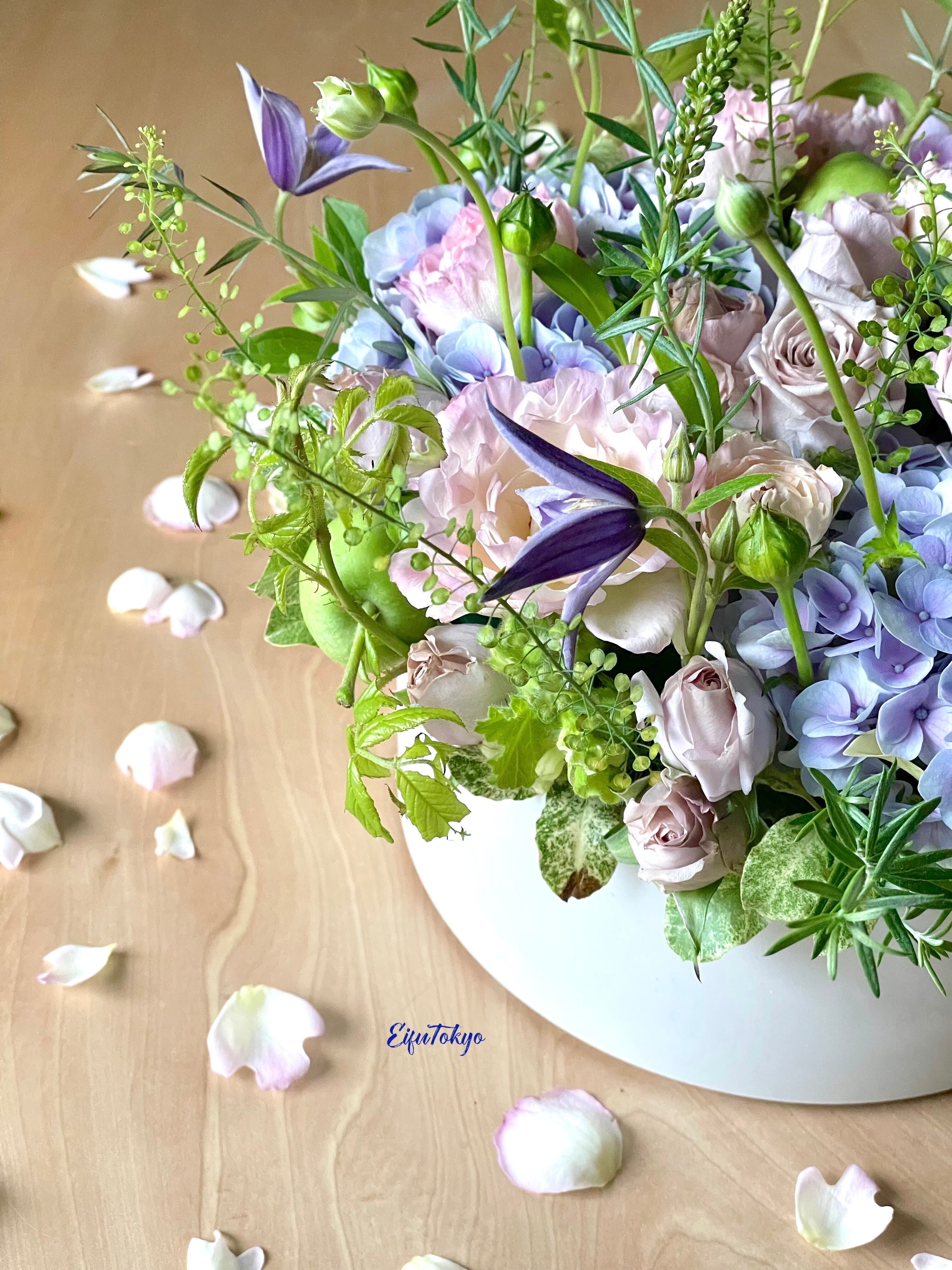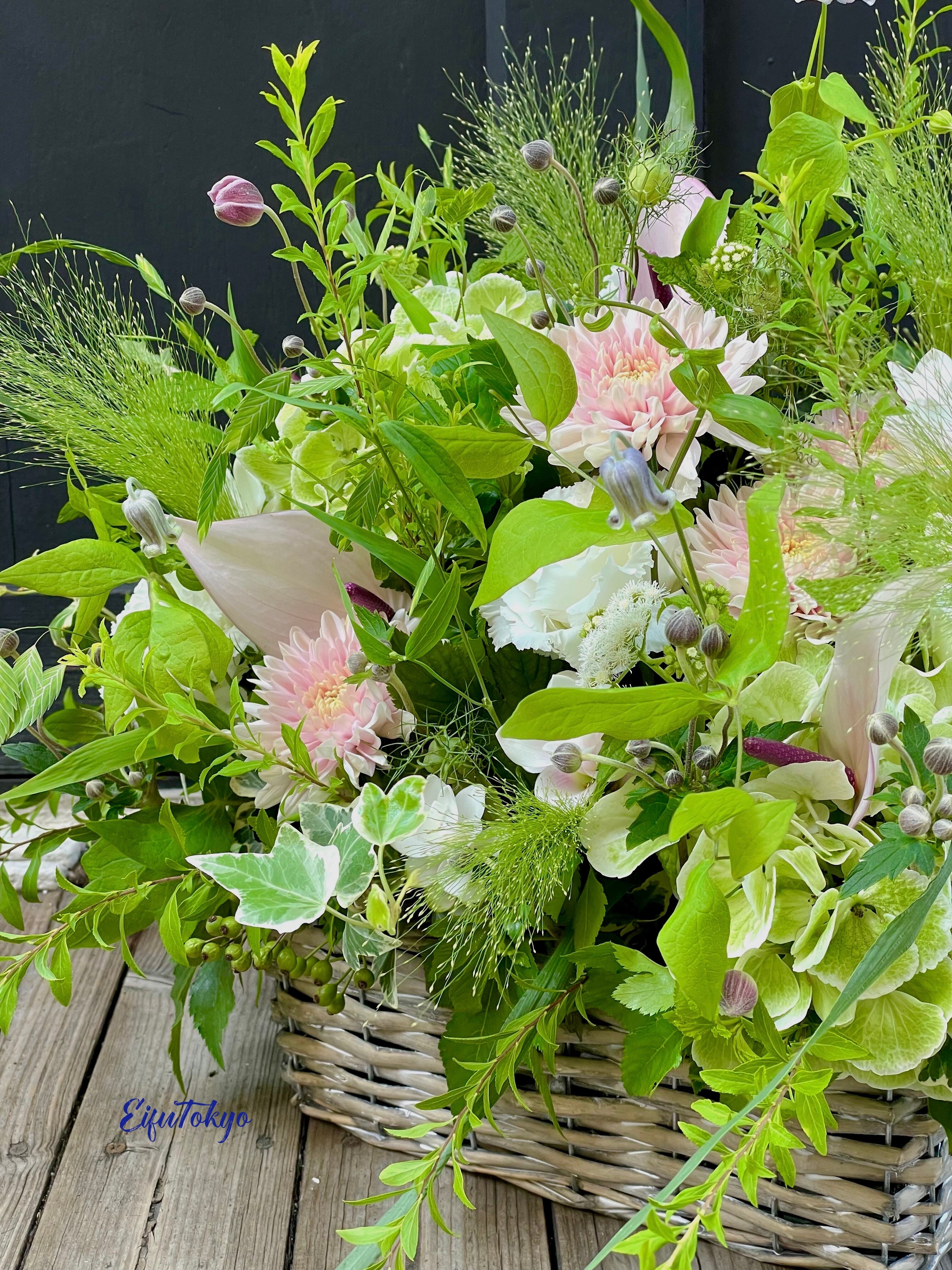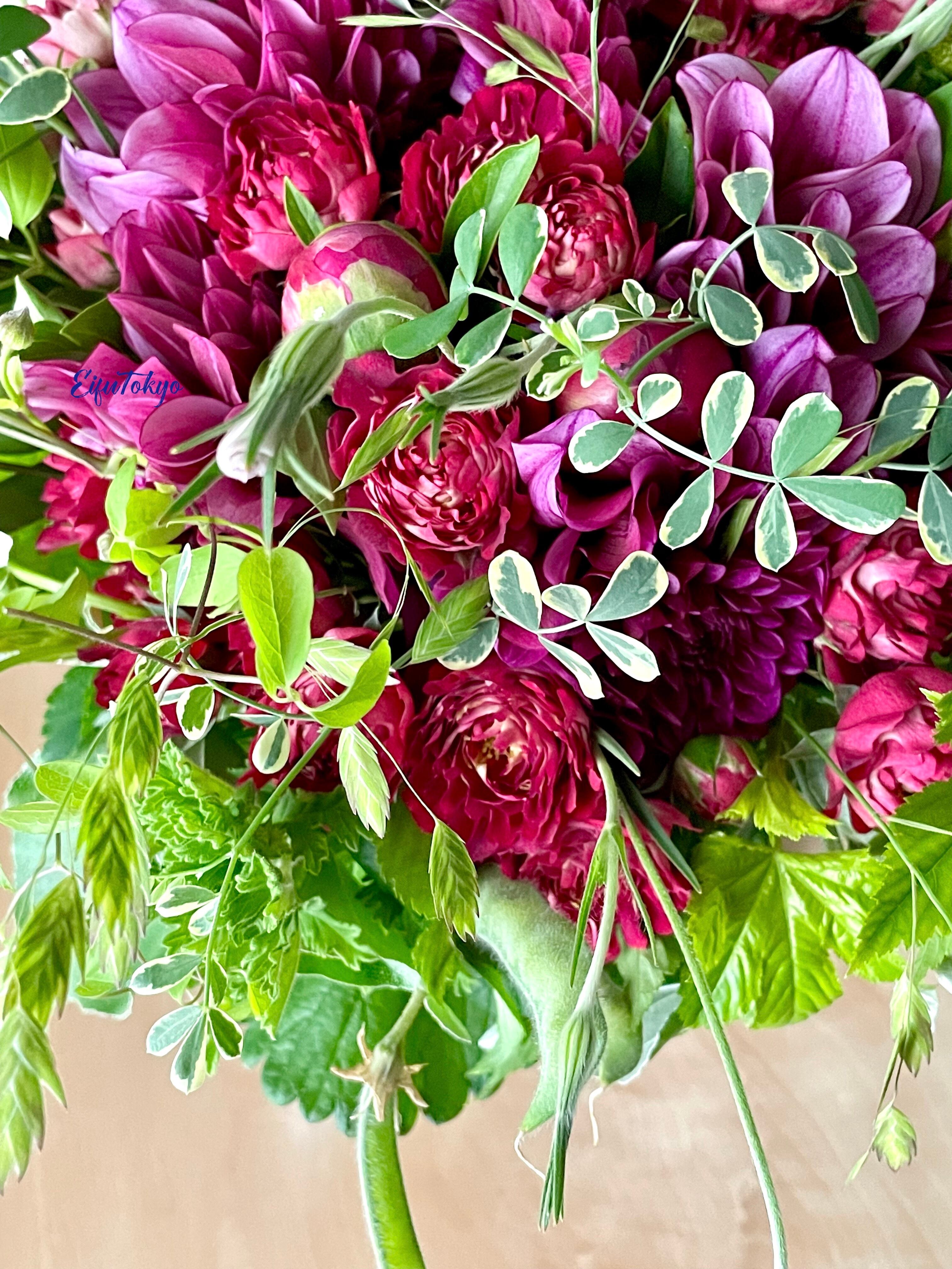 ご自宅のお好きな花瓶に入れて楽しむ方が多く、アレンジメントよりブーケ(花束)が人気です。